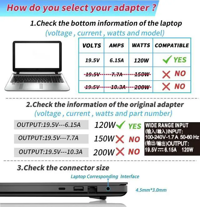 Output Max: 19.5V 6.15A 120W(Also Compatible With 19.5V 4.62A 90W );