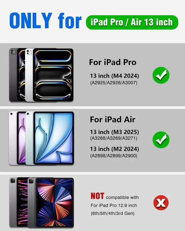 This NILLKIN ipad air/pro 13 inch case only compatible with iPad Air 13" M3 (2025) -A3268/A3269/A3271 and M2 (2024) -A2898/A2899/A2900, iPad Pro 13" M4 (2024) -A2925/A2926/A3007, Please check your iPad model NO. before purchasing. ^^ Our Advantages 1. Portability -