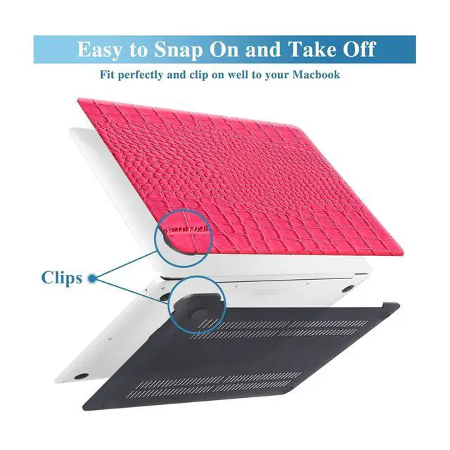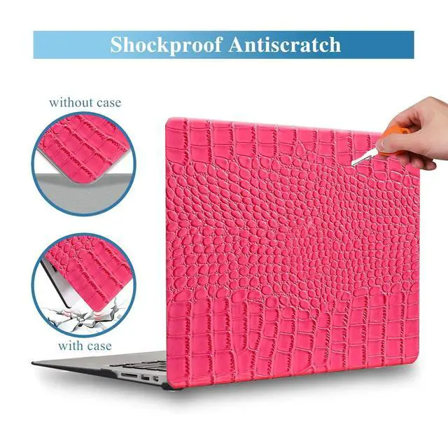 Features: Made of PU leather and PC materials, protecting your laptop from scratches and and everyday damage. This gorgeous crocodile-embossed macbook case has a vibrant and shiny finish that creates a striking visual effect. The rich, textured look of crocodile/alligator skin adds a tactile dimension to your device. Thoughtfully designed with a perfectly positioned cut-out for the logo. Snap-on design, easy to put on and remove. Fully access to all ports and buttons. The additional silicone keyboard skin protecting your keys from dust, spills and crumbs. Bottom vents help keep your laptop cool and four non-slip rubber pads keep your laptop in place. Snug fit, ultra-thin and lightweight, it won't add any noticeable weight or bulk to your laptop. Each piece of faux crocodile leather is crafted with its own unique natural grain. True luxury should be as unique as you are!