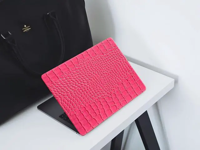 • **Stylish Glossy Crocodile Print Laptop Case** Unlike traditional matte textures, our innovative glossy finish offers a sleek and modern look that exudes sophistication. Crafted from high-quality faux crocodile/alligator skin, this case not only enhances the visual appeal of your laptop but also reflects a unique sense of style and refined taste. Every detail is meticulously considered, including a precisely crafted cut-out for the Apple logo, allowing it to shine through while still providing ample protection.
