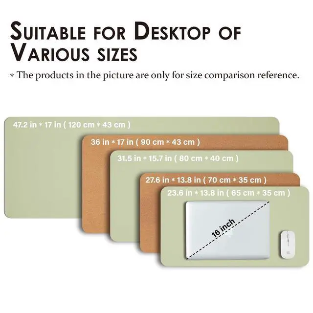 Versatile Sizes & Comfortable Touch: Choose from Multiple sizes - all with a 2mm thickness for comfort. Perfect for different settings, the compact sizes ( 23.6" x 13.8" ) for small desks, standard options ( 27.6" x 13.8", 31.5" x 15.7", 36"x17") for daily office use, and expanded layouts ( 47.2" x17") for spacious multi-device setups. ^^ Waterproof & Easy to
