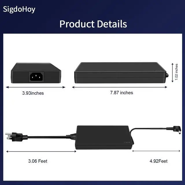 Connector Size: 5.5 mm* 1.7 mm ^^ Compatible with Acer Predator Helios 300 PH315-53-72XD PH315-53-781R PH315-53-7426 PH315-53-71HN PH315-53-71QX PH315-53-71VG PH315-54-760S PH315-54-714U PH315-54-74FG. ^^ Fit for Acer Predator Helios 300 PH315-55 54 53, Predator Helios Neo 16 PHN16-71, Predator Triton 14 PT14-51, Nitro 5 16 AN16-51, AN517-42-R85S, Nitro 17 Intel AN17-71 Gaming Laptops. [Do not buy if your laptop requires more than 11.8A ]. ^^ [Package Includes] 230 Watt AC adapter and Power Cord. ^^ [Rugged and Safe]- We use top industry standards to make this power adapter and pass rigorous safety tests to ensure the safety of your laptop.