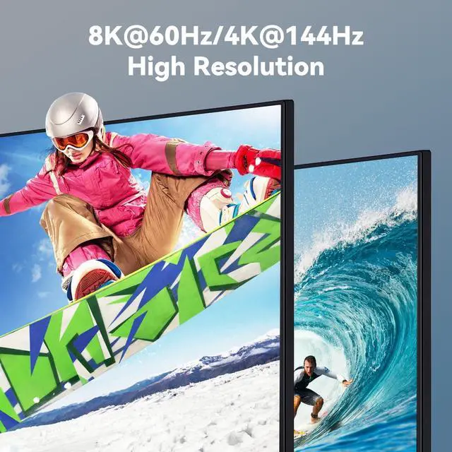Note: Before power on, please check the connection line carefully. And make sure all interfaces are connected properly. ^^ UHD 8K@60Hz ResolutionThis HDMI KVM switch 2 port supports resolution up to 8K@60Hz and backward compatible 4k@240Hz, 4k@120Hz, 4K@60Hz, 2560*1440@60Hz, 1080p and below. The combination of 8K resolution and 60Hz refresh rate creates an immersive experience that takes entertainment and work to new heights. KVM switches also support HDMI 2.0.