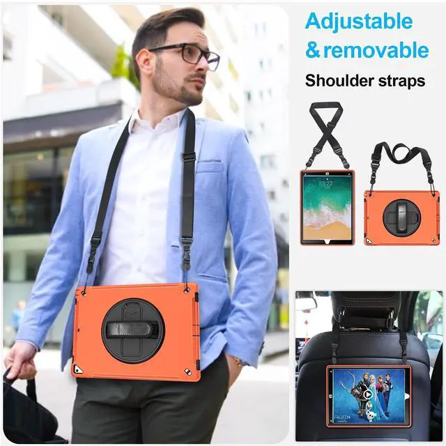 SHOULDER STRAP: This hand strap is convenient for you to hold when you use this ipad for show and tell. You can carry tablet with shoulder strap and even hang it on your car seat during hiking, traveling other outdoor activities. ^^ BUILT-IN APPLE PENCIL HOLDER +
