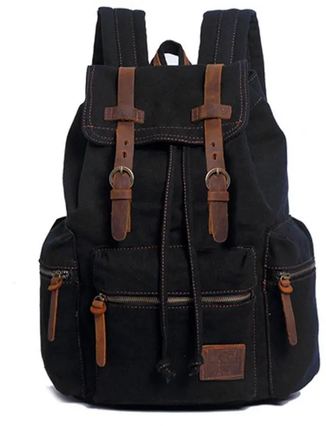 DescriptionHigh Capacity Canvas Vintage Backpack - for Hiking Travel 12-15" Laptop Backapcks for Men Casual Daypacks School bag Rucksack (M-Black)