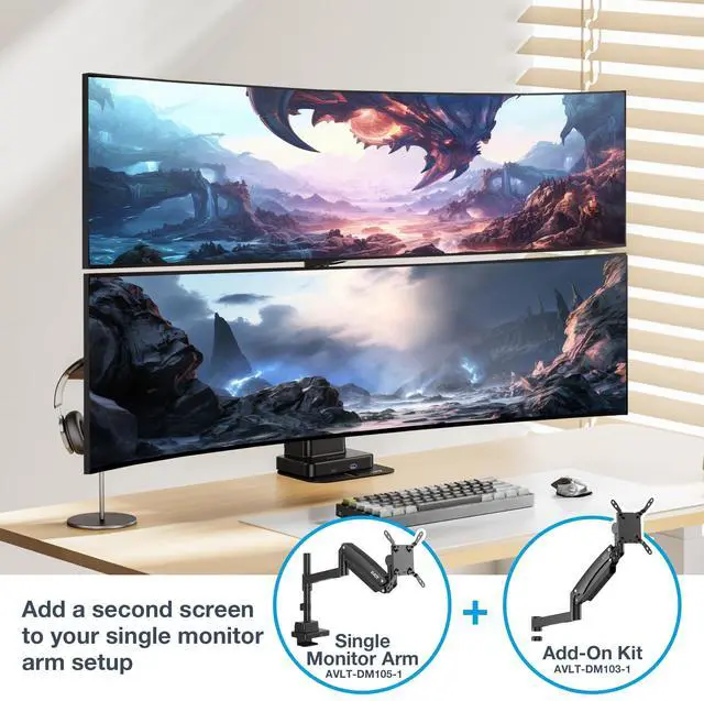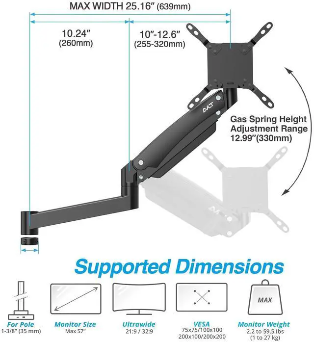 ^^ Supports Ultra-Wide Screens: Securely holds 17" to 57" flat, curved, or super ultrawide ( 32:9 ) screens up to 59.5 lbs (27kg), perfect for professional and gaming setups. ^^ Pole