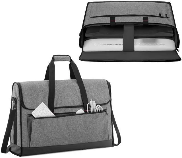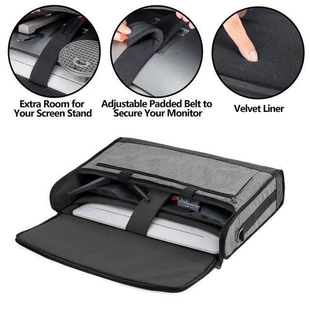 ^^ DUAL COMPARTMENTS: This carry bag can accommodate two up to 24 screens. Adjustable padded belt can stabilize the screen and reduce shaking. You need to separate the screens and the stands before put them into this bag, and the main compartment is supper large for the stands or other supplies.