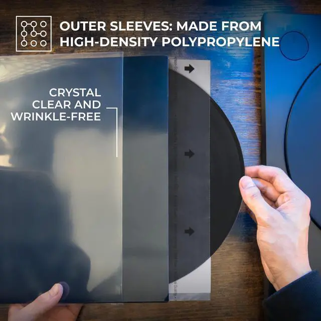 Crystal Clear Outer Covers: Our protective outer vinyl sleeves for records are made from Polypropylene. Polypropylene is known for its high flexural strength, moisture and chemical resistance, and durability ^^