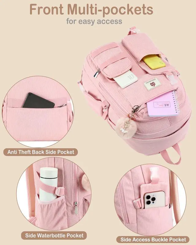 College-Skin Friendly Material: The campus book bag is made of ultra light weight, super soft and high density corduroy fabric, which will feature skin-friendly touch. The metal zippers closure are used by the premium quality zippers to ensure the long-lasting usage ^^ Backpacks for