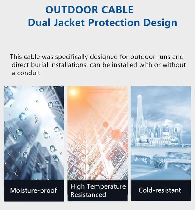 Its waterproof direct burial rating and four twisted pairs with a PVC cross separator reduce noise for a clean, uninterrupted connection. This cross flexi-core design also makes for a more durable cable that wont bend or break. This cable was specifically designed for outdoor runs and direct burial installations, making it perfect for a wide range of applications, including home and office networks, server connections, and outdoor installations. It can be installed with or without a conduit, providing flexibility and ease of use for any installation project. With its compatibility with a wide range of devices, including routers, switches, printers, modems, scanners, laptops, computers, POE cameras, gaming consoles, televisions, network switches, and more, this Cat6 Ethernet cable is an ideal choice for any networking needs.