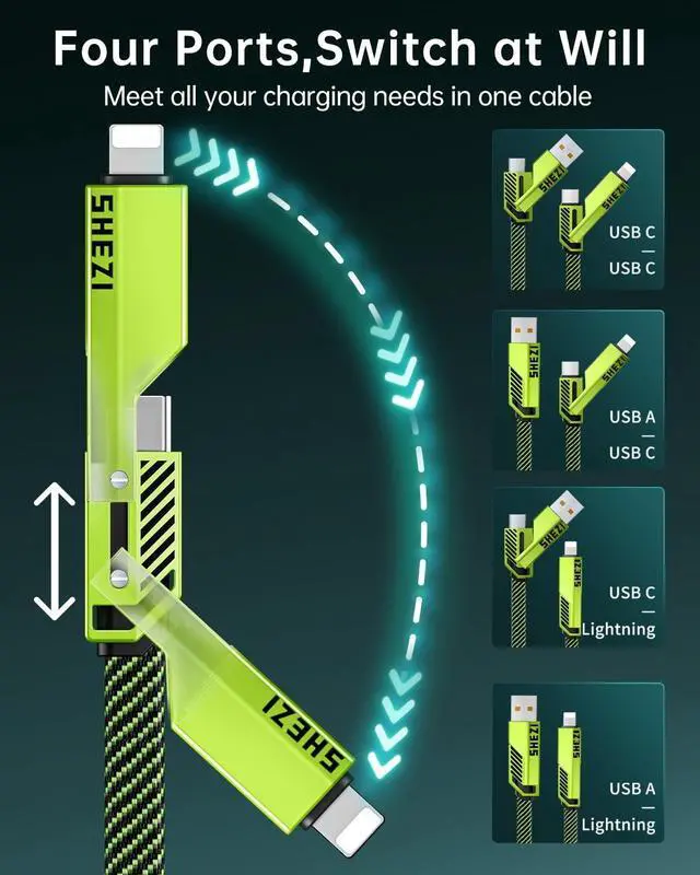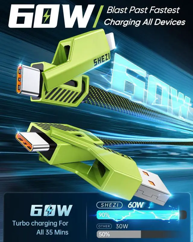 High-Speed Charging: Our multi-charging cable is equipped with 60W charging power, allowing you to get the power required for one day in 35 minutes.