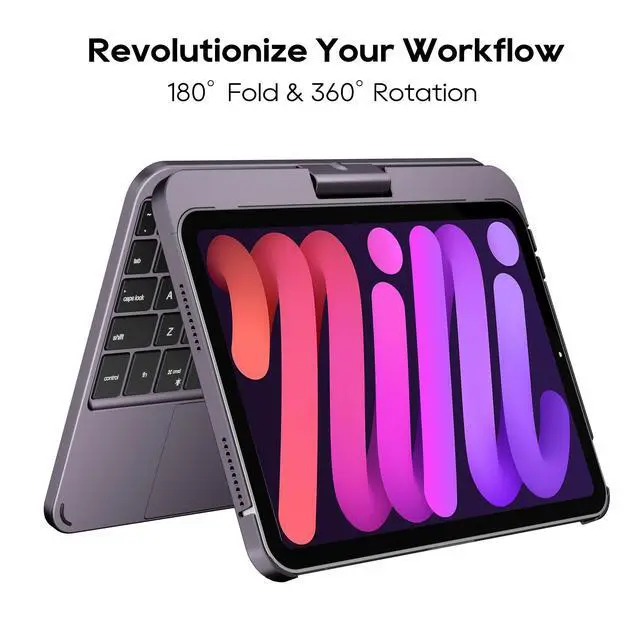 [COMPATIBILITY]: edaiser Swivel keyboard case is only compatible with Apple 2024 iPad Mini 7th generation (A17 Pro) A2993 A2995 A2996 and 2021 iPad mini 6th generation A2567 A2568 A2569. ^^ PERFECTLY DESIGNED FOR SMALL HANDSSpecially optimized for kids & students (Ages 6-14)! Features a compact keyboard with 1.512. 9mm keys, perfectly sized for younger fingers to type comfortably and accurately, reducing hand fatigue. A mindful design choice for optimal typing experience. ^^ 360 ROTATION & LAY-FLAT DESIGNUnleash creativity and flexibility with the 360 swivel and 180 lay-flat feature. Perfect for typing, drawing, watching, or gaming, adapting to any desk, lap, or standing scenario for both learning and play. ^^ RGB BACKLIT KEYBOARD & TOUCHPADBoost productivity and fun with 7 colorful backlight modes and 3 brightness levels. The multi-touch trackpad supports intuitive gestures, making navigation a breeze for homework and apps, even in low light. ^^ ALL-DAY POWER & DURABLE PROTECTIONEnjoy up to 180 hours of typing (backlight off) on a single charge. The lightweight yet strong ABS shell offers 360 protection against bumps and drops, built to withstand kids' daily adventures.
