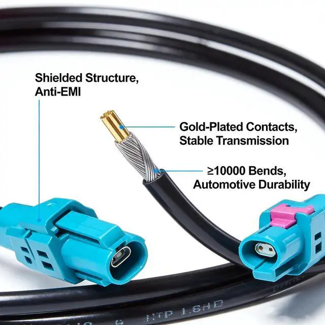 Compatible with Rosenberger H-MTD Systems E6K10A-1CAZ5-Z / E6S10A-1CAZ5 connector, 100% plug & play with OEM automotive Ethernet harness ^^ Supports 1000BASE-T1 & Multi-Gigabit up to 10Gbps Perfect for ADAS, zonal architecture, IVN, backbone, cameras, and sensors ^^ Double-Shielded + Low Bend Radius Design Excellent EMI protection and flexibility for tight in-vehicle routing without signal loss ^^ High-Speed Data for Modern Vehicles Widely used for Tesla Model 3/Y/S/X, BMW iX, Rivian R1T/R1S, Lucid Air, Cadillac Lyriq and other EVs ^^