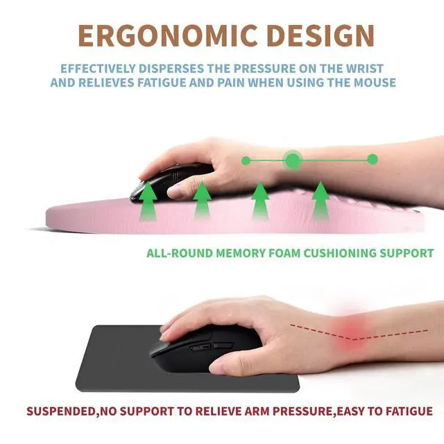 Ergonomic DesignThe perfect combination of ergonomics and triangular massage protrusions provides maximum comfort to your wrists, helps relieve wrist pain and fatigue associated with long hours of work or gaming, and prevents carpal tunnel syndrome (CTS).