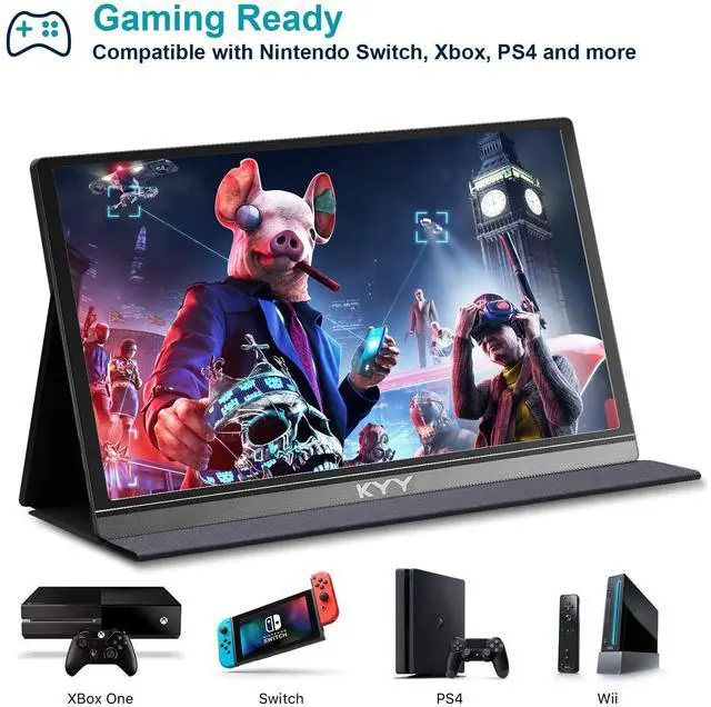 PORTABLE MONITOR ]: KYY using a 15.6 ''( 8.8" x 14.2" ) advanced IPS screen with 178 wide viewing angle, Delivers 1920*1080 breathtaking viewing quality and HDR technology, KYY portable gaming monitor has excellent color rendering ability, provide you the clearer, smooth, excellent performance in gaming/multimedia. It can effectively reduce blue light radiation damage, no flickering, eye-care, and make it easier to watch for a long time ^^ [