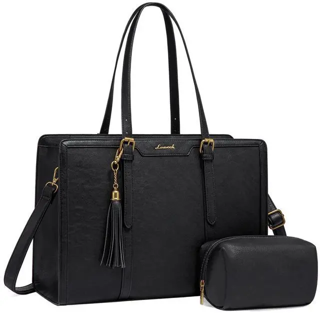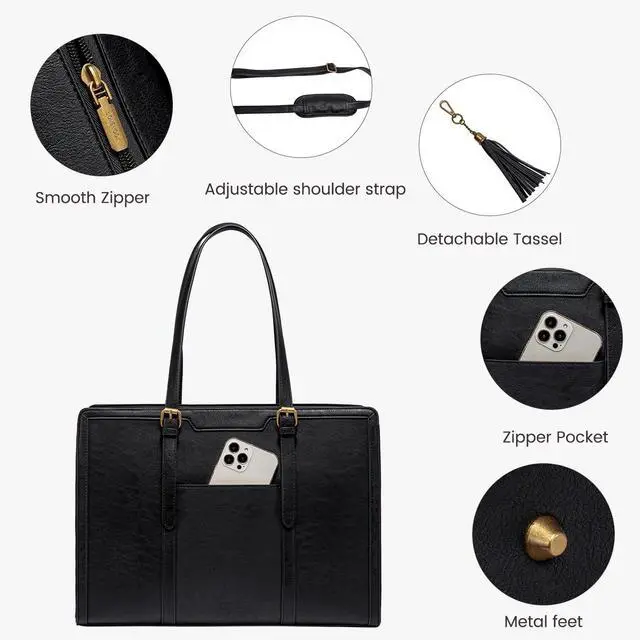 Elegant Laptop Tote Bag & Stand Upright This laptop bag for women combines vintage charm with modern fashion, making it a classic accessory that never goes out of style. Its metal feet ensure that the work bag stands upright and maintains its shape, adding to its overall sophisticated look. ^^ Large Capacity & Multi-Pocket Tote Bag With multiple pockets and compartments, this work bag offers generous storage capacity. Organize and carry all your essential items, such as your laptop, Water bottle, notebooks, pens, and more, with ease and convenience.