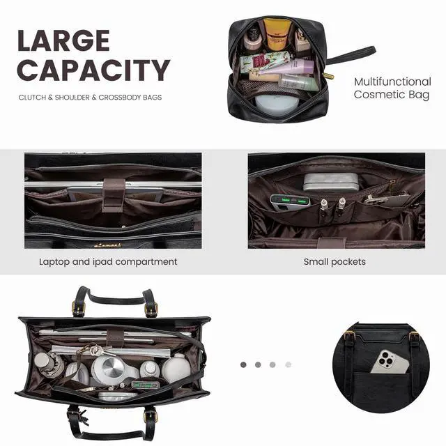 Any Occasion: Whether you're heading to the office, or traveling, this briefcase is designed to adapt to various occasions. It can also transform into a purse, shoulder bag, or crossbody bag. An excellent choice as a gift for your mother, wife, or friends, showcasing your taste and thoughtfulness. ^^ Complimentary Clutch Bag & Customer Service: As an added bonus, this messenger bag comes with a clutch bag. Use it to keep your accessories, cables, or personal items organized and easily accessible. We also pride ourselves on providing excellent customer service, ensuring your satisfaction with your purchase.