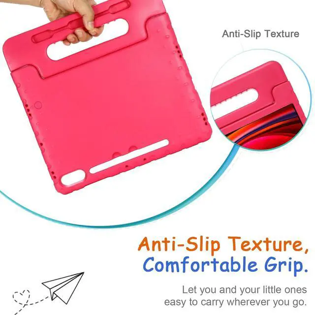 Features: * Made of lightweight sturdy child friendly and thick EVA foam to guard your tablet at home or in the classroom. * Anti-slip soft outer layer case provides great handling and extra cushion for impact resistance. * Easy-to-grip, large handle designed to comfortably hold with smaller children's hands. * The handle is also a kickstand with 2 viewing angles for watching movies & typing. * Perfect for all families with children, no worry to break the tablet by wild kids.