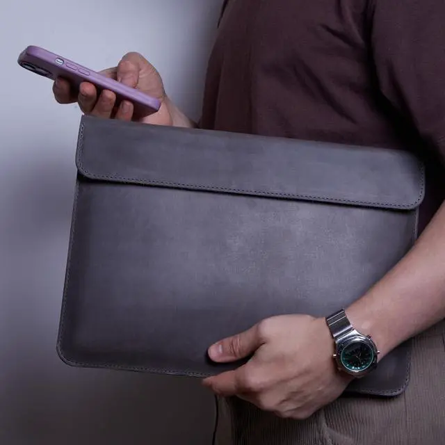 CRAZY HORSE GRAY LEATHER LUXURY WITH CHARACTER Premium vintage leather develops a natural patina over time. Small marks are part of its appeal and easily blend in with use, giving each MacBook 16 case a unique, elevated look. ^^ MAGNETIC CLOSURE NO BULKY ZIPPERS The sleek magnetic flap keeps your laptop secure without noisy zippers or added bulk. Fast to open, satisfying to closeperfect for meetings, travel, or remote work. ^^ TAILORED FOR MACBOOK PRO 16 (M1M4) Designed to fit A2141, A2485, A2780, A2991, this leather sleeve hugs your MacBook Pro tightly, preventing slippage and protecting it from everyday knocks and scratches.