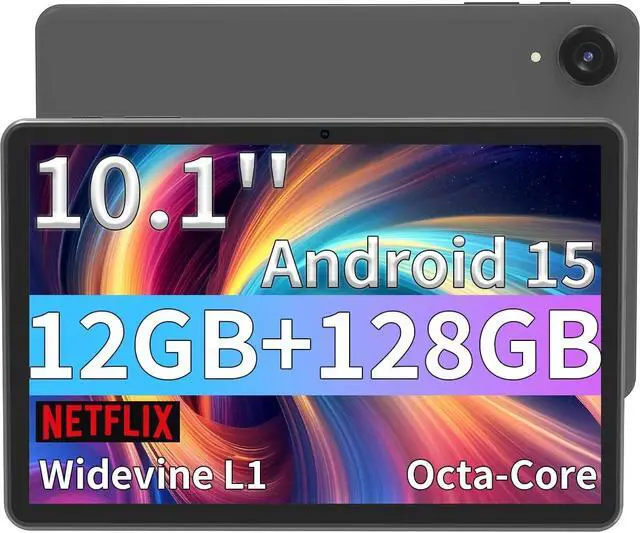 ECOPAD Android 15 Tablet, 10.1 Inch Tablets with Octa-core Processor,HD IPS Screen, 12GB RAM+128GB ROM, Support 1TB Expansion, Dual Band WiFi, BT 5.0,18W Fast Charge and Long-Lasting Battery,Black
