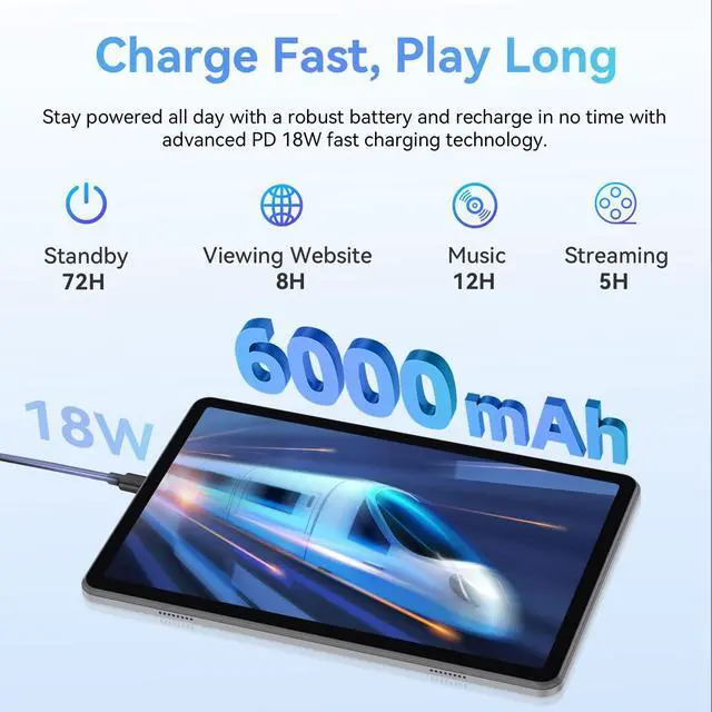 Need even more space? Easily expand the storage up to a massive 1TB using a Micro SD card. Download your favorite content from Netflix, HBO, Disney+, and more without worrying about running out of space. ^^ Reliable Dual-Band WiFi & Connectivity - Stay connected with fast and stable internet access via dual-band WiFi 5 ( 2.4GH z and 5GHz). Enjoy seamless streaming, smooth downloads, and uninterrupted browsing. The tablet also features Bluetooth 5.0 for easy pairing with wireless headphones and other devices, a 3.5 mm headphone jack for wired connections, and GPS for navigation.