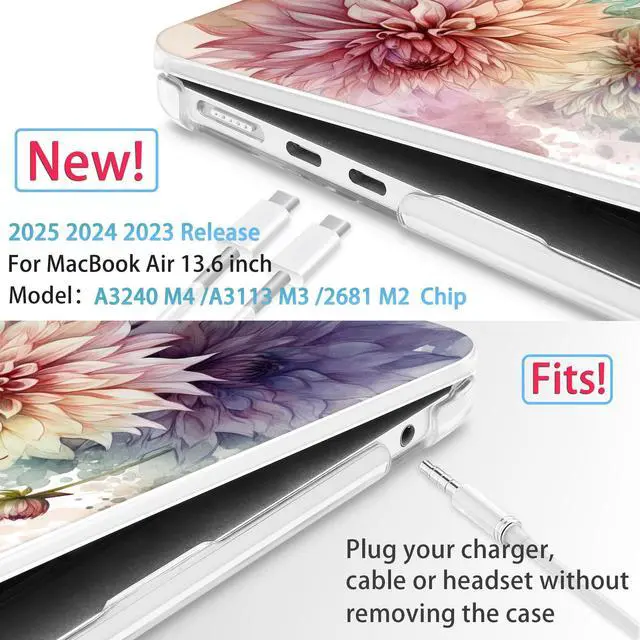 Macbook Air 13 inch (Model: M1 Chip A2337 A2179 A1932). Please kindly check the model number "Axxxx" on the back of the laptop before your purchase, make sure you choose the exact same model number as the listing title stated "A2681/A3113/A3240 " ^^ M4/M3/ M2 Macbook Air 13.6 inch Case-Unique 3D UV painting with high impact strength, hard plastic case with soft touch finish over top and bottom covers for silky - smooth soft-touch - while protecting your laptop from everyday scrapes and scratches, adding beauty to your for MacBook Laptop ^^ Mektron for Macbook Air A2681/ A3113/A3240 Case DesignNO cut out/two pieces snap-on design, easy to install and take off. It allows full access to all ports, fully vented for safe heat disbursement ^^ Package for 13 Macbook Air Case 2025 2024 2023 2022 Model A2681/ A3113/A3240 Laptop Include- You'll get beautifully 1x Printing Top case + 1x Clear Bottom case + 1x Screen Protector + 1x Keyboard cover + 1x Webcam Cover. The screen protector protects your screen from daily scratches, is easy to install, and has no residue when removed. The matching keyboard cover provides full protection for your keyboard against key wear.