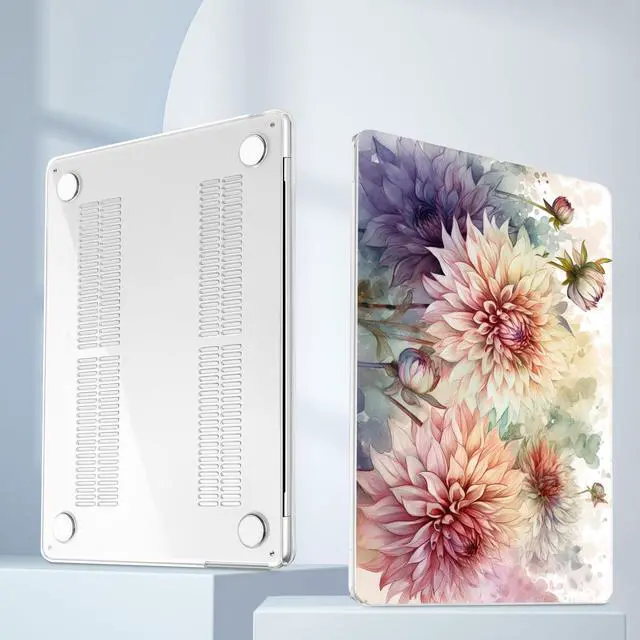 Mektron for 2025 M4 MacBook Air 13.6 Inch A3240 Case Fits 2023 A2681 M2 2024 A3113 M3 Chip with Liquid Retina Display, Printed Plastic Hard Shell Cover for MacBook Air 13.6", Watercolor Dahlias