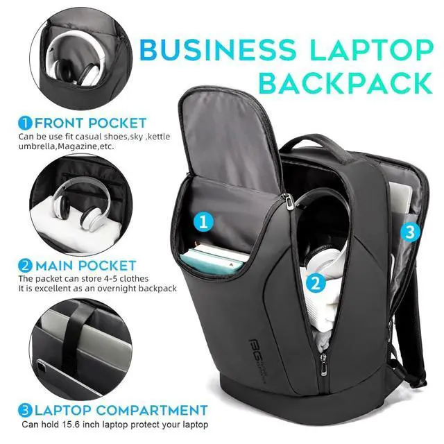 Waterproof material: Bange laptop backpack made of high-density coated oxford fabric not only waterproof and resistant but also scratch-resistant ^^ 180 opening pocket: The front pocket can be use fit casual shoes, sky, kettle, umbrella, Magazine and Other goods, the backpack have 5 pocket, the main pocket can contain 4-5 chothesthe laptop pocket can 180opening can hold 15.6 inch laptop and the pocket division reasonable can meet your daily needs, Two front pocket can meet your daily needs, You can place anything you have to have any items, such as wallet, pen, convenient sign, etc ^^