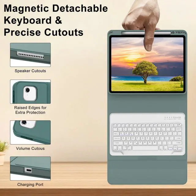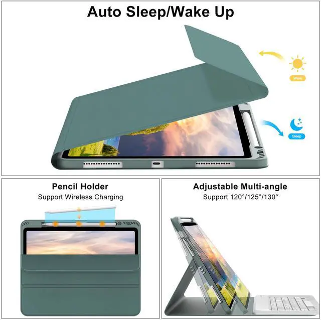 Note: Not include Pen/Tablet. ^^ Rechargeable & Long Life BatteryOur iPad Air 13 inch keyboard case 2024 2025 built-in 500mAh large capacity battery, more energy saving and lower consumption, ensure you can use at least 75 hours. It can be fully charged in 3-4 hours with Type-C charging cable, don't need to replace battery. ^^ Support 3 System & Full Shortcut KeysThe iPad Air case with keyboard 13 inch can be freely removed from its protective case. Compatible with iOS, Android, and Windows, simply press Fn and the corresponding key (QWE) to switch keyboard systems. Customized hotkeys for iPad and full shortcuts for more efficient keyboard use. ^^ Auto Sleep & Wake UpThe iPad Air 13 case with keyboard automatically sleeps or wakes up the tablet screen when you open or close it, which helps to protect and save the battery life and keep all the important things you may be working on safe, providing long-lasting protection for your tablet battery, prolonging the time you use your tablet.