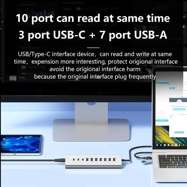 Whether you need to connect external drives, keyboards, mice, or other USB devices, this hub offers the flexibility and speed demanded by today's digital workspace. The plug-and-play design ensures immediate compatibility with your devices without requiring additional software installation.