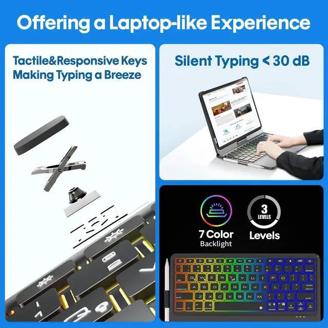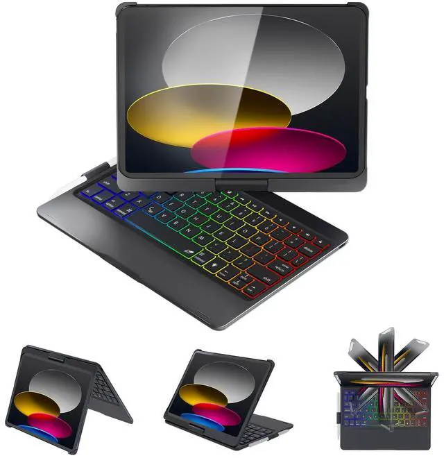 The dedicated function keys let you control brightness, volume, and media playback directly from the keyboard. Ideal for work, study, or entertainment. iPad 10th generation keyboard casePerfect for students, professionals, and creatives who need a seamless typing experience. ^^ iPad Air 11 Inch Case with Rainbow Baclits&Long BatteryiPad Air 11 inch(2024, 2025) keyboard case with backlits ensures you dont have any trouble while typing in low-lit environment. iPad Air 11 inch keyboard case lights up with different colors and can be turned up brighter or dimmer as needed.