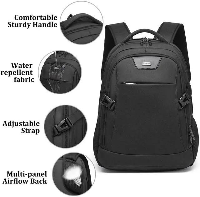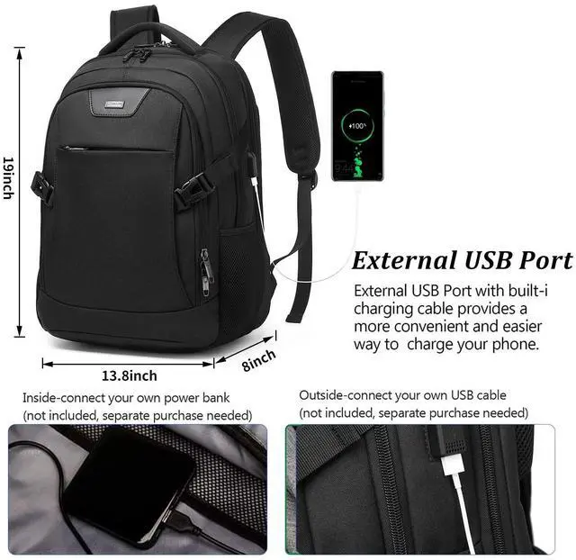 Large Capacity- the laptop backpack features compact desgin, size: 19 Inch* 13.8 Inch*8 Inch. Large capacity on main compartment so daily necessities and tech electronics accessories can be put together if you need. Easy organized and access. ^^ USB Charging Port - With USB Charging Port, the business backpack for men make you easiler charge your phone when you are outdoor walking or riding, running, hiking, camping. ^^ Multi-Compartmen-backpack with laptop sleeve. Main compartment comes with 2 inside pockets, 1 pocket fits your 15.6 inch laptop as well as 15 Inch, 14 Inch and 13 Inch Laptop. Front compartment comes with 5 insde pockets for your small items, 1 front zipper pocket comes with 2 small pockets inside and a key fob hook. 2 side pockets for your water bottle or umbrella. multi function, can be used as a daily backpack, business work backpack, travel backpack, traveling backpack. ^^ Comfortable when carry- Breatheable decompresson material on the backside and adjustable shoulder strap, when you carry this laptop backpack, it will no fatigue and protect your spine. The backpack features luggage sleeve on the backside, fits all size of luggage, release your hand when you are travel outside.