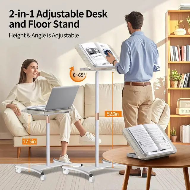Height & Angle Adjustable: This laptop floor stand adjusts from 17.5" to 52" in height and tilts from 0 to 65 for customizable ergonomic comfort, reducing spinal and eye strain for a healthier, more comfortable work setup ^^