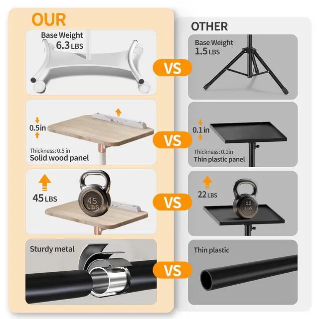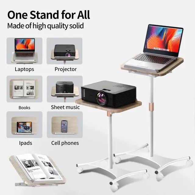 Rolling Laptop Stand: With a sturdy base, lockable wheels, and smooth mobility, this stand ensures stability on various surfaces. It can be used as a floor-standing model or placed on a desk separately, making it perfect for office, study, entertainment, and projector use ^^