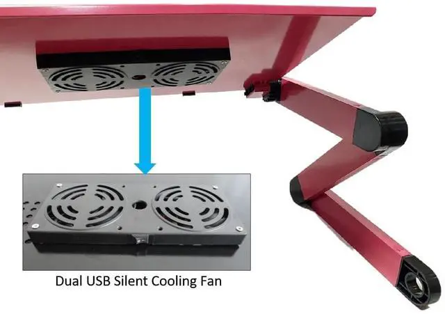^^ Material: Aluminum. Our desk laptop stand is made of lightweight, high-strength aluminum tray and ABS plastic auto-locking joints. It can better absorb and discharge heat for laptop to prolong the service life of laptop. ^^ Hmax = 48cm. Suitable and compatible for up to 17 inch / 17" MacBook Air/Pro, Dell, HP, Lenovo and all laptop/notebook/tablet/computer/magazine/book/iPad etc. An extra anti-slip clip on the laptop table tray is designated to clamp the stuff in place. You may use it as a book stand mount holder and TV bed tray. ^^ Smart design, highly functional with multiple uses, suitable for all settings, easy storage and portability. The multi-angle folding performance makes the desk act as computer desk, desk, book stand, snacks tray in various places like bed, sofa, floor and office, bringing in much convenience to your life. ^^ Enhanced Heat Dissipation Design is available now! The Built-in CPU fans are powered by a USB cable, 2 fans work, the upgraded design enhances the wind power. The fan blades are used to run at a high speed to achieve fast ventilation and no noise, quickly solve the computer high temperature problem, and protect your computer from harm.