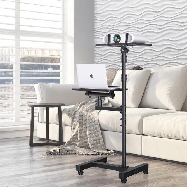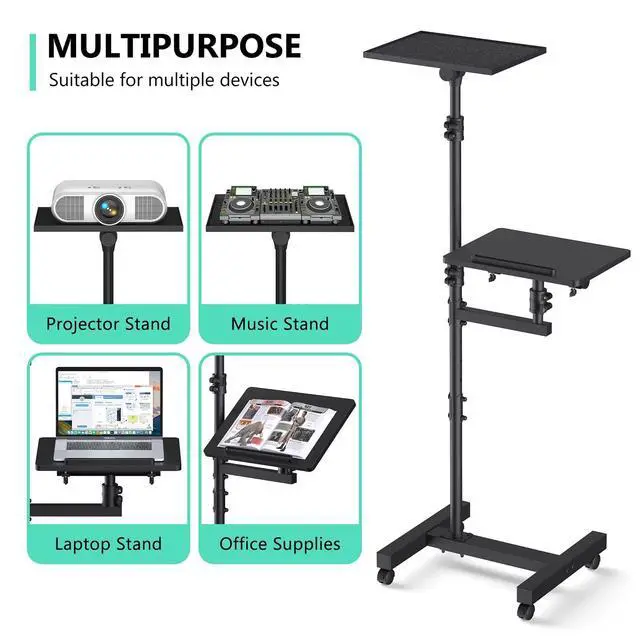 Versatile Dual-Trays Design: This multifunctional projector stand boasts two adjustable trays, enabling you to mount multiple devices such as projectors, laptops, or DJ equipment simultaneously ^^ Adjustable Height &