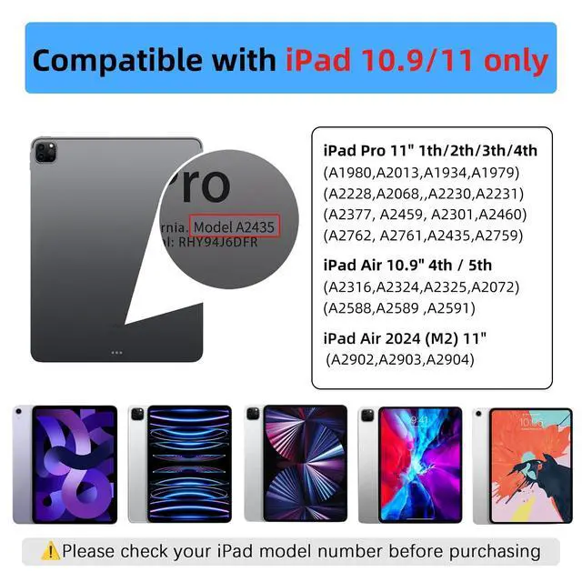 Compatibility: The ipad magic keyboard case compatible with iPad Air 11-inch 2024 (M2) & iPad Pro 11 inch (4th/3rd/2nd/1st gen) & iPad 10.9 inch Air 5th/4th gen, models include 2024 Air 11 inch (A2902, A2903, A2904), 2022 Pro 11 4th Generation (A2759, A2435, A2761, A2762), 2021 Pro 11 3rd Generation (A2377, A2301, A2459, A2460), 2020 Pro 11 2nd Generation (A2228, A2068, A2230, A2231), 2018 Pro 11 1st Generation (A1980, A2013, A1934, A1979), 2022 10.9 -inch Air 5th GenerationA2588, A2589, A2591) 2020 10.9 -inch Air 4th Gen (A2072, A2316, A2324, A2325), Please check the iPads model number on the back. ^^