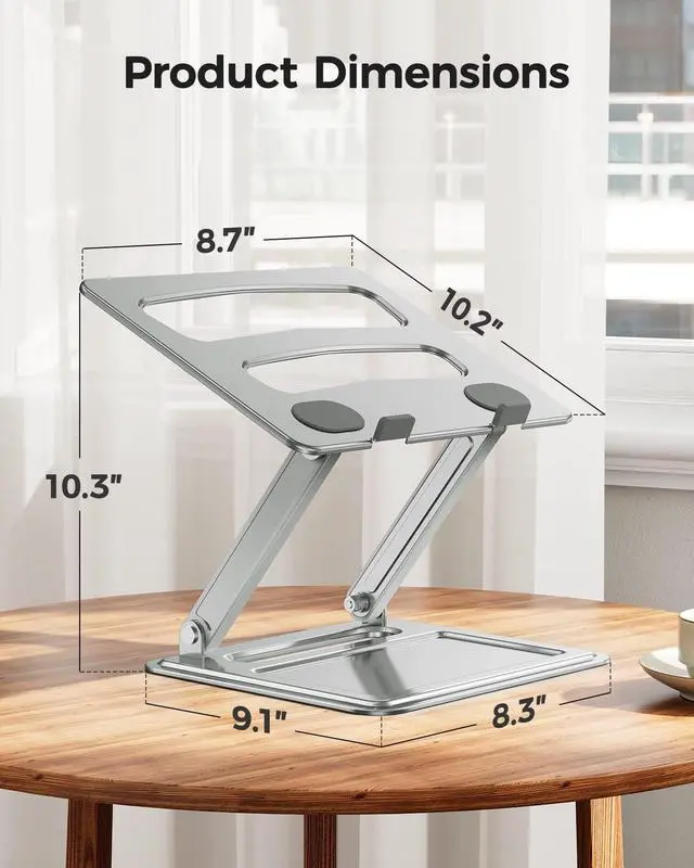 Wide Compatibility Laptop Stand - Fits 10 to 15.6 inch laptops, with adjustable width and non-slip silicone pads to securely hold your device on any desk or table. ^^ Adjustable Laptop Riser -This laptop stand for desk can raise your laptop up to 5.5 inches. Included with an Allen Key, you can set your laptop at various heights and set the keyboard at a suitable angle which will be extremely convenient if you use your laptop in a variety of locations. ^^ Sturdy & Heavy-Duty Computer Stand - Supports laptops up to 17.6 lbs (8kg), providing a stable laptop riser for MacBook Pro, gaming laptops and thick notebooks without wobbling.