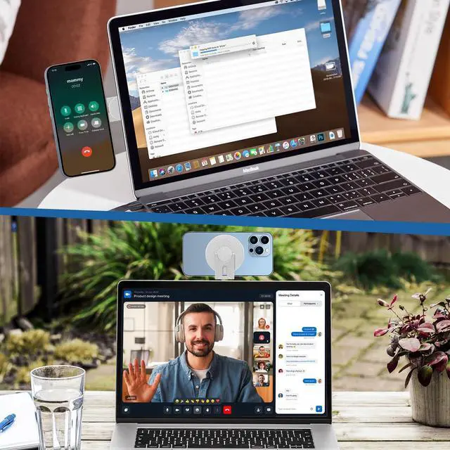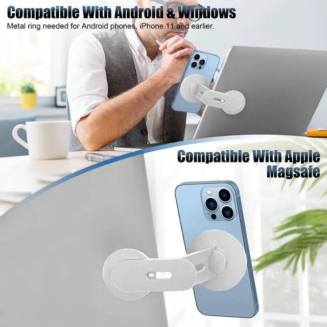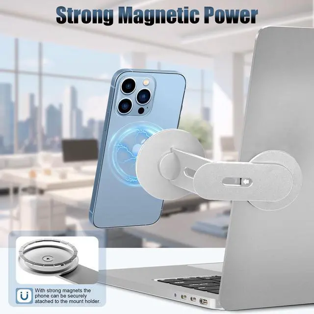 All Phones: Magnetic laptop phone holder is designed for Magsafe iPhone 17/ 16 /15/ 14 / 13 / 12 series and other phones with metal ring (included) ^^ Adjustable