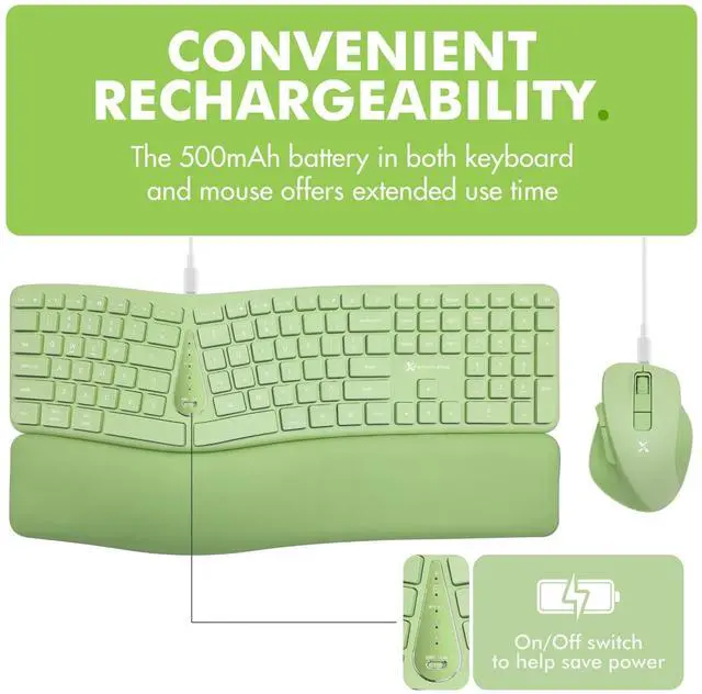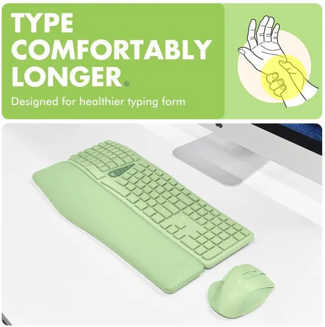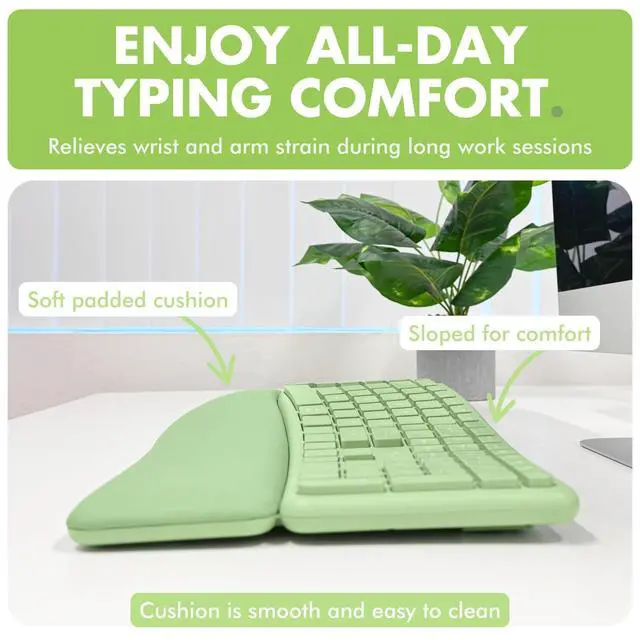 All-Day Comfort: The split keyboard, soft pillow wrist rest, and contoured mouse help reduce strain and improve comfort during long work sessions. This is your go-to ergonomic wireless keyboard and mouse combo.