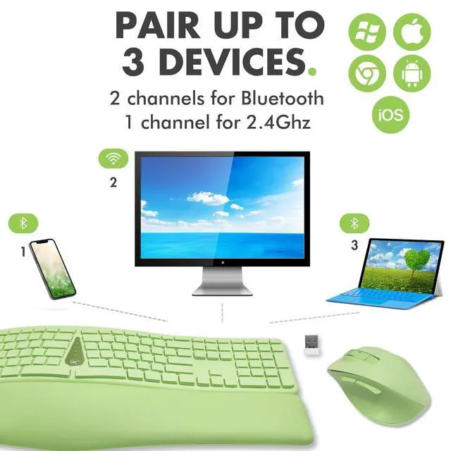 ^^ Multi-Device Connectivity: Pair up to 3 devices with the wireless mouse keyboard combo using Bluetooth 5.0 and 2.4GH z for seamless switching between your computer, tablet, and phone. (Mac, PC, iOS, and Android).