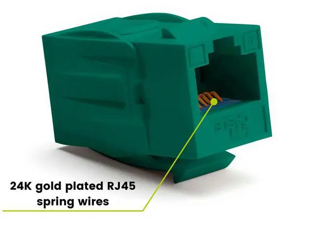 MAXIMUM PERFORMANCE. Supports 100BASE-TX, 1000BASE-T, 2.5GBASE -T, and 5GBASE-T up to 5 Gbp/s in 328 foot channels. Supports PoE/PoE+/PoE++ (IEEE 802.3 af/at/bt) 4PPoE up to 100W. Impedance matching technology. ^^ EASY TO USE. Our 180 RJ45 to RJ45 feed through keystone jack couplers are designed for quick and painless installations. The reusable keystone jack design makes it easy to disconnect and relocate as needed. ^^ VERSATILE. 100% compatible with any standard wall plate or patch panel. Unique PCB and internal structure offers an effective method for reducing alien crosstalk from neighboring connectors.