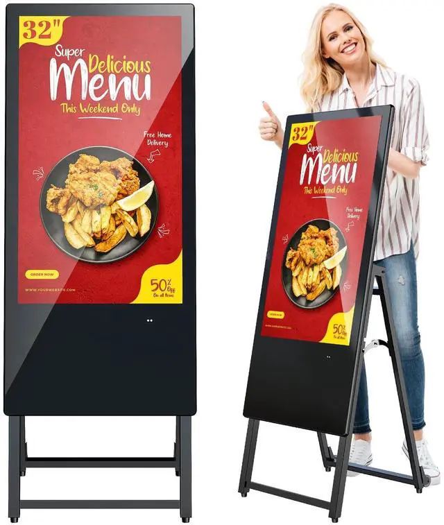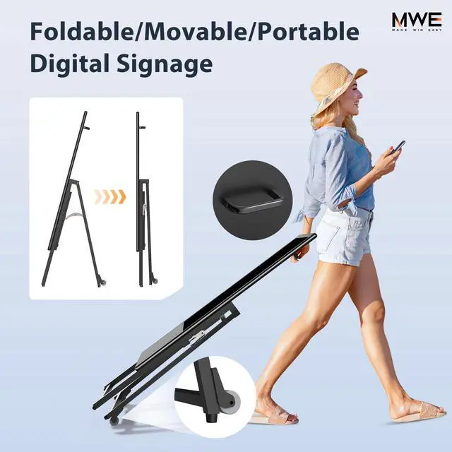 ^^ Portable and Foldable DesignThe MWE-QIXZOCV digital signage display is foldable, movable, and portable. It can be easily folded and moved around with the help of built-in wheels, making it convenient for transportation and setup in different locations. This portability makes it suitable for various events, exhibitions, and temporary promotional setups. ^^ Wide Application ScenariosThis digital sign can be used in a wide range of settings such as restaurants, hotels, shopping malls, and retail stores. Its sleek design and high-quality display make it an effective tool for advertising, menu display, promotional announcements, and information sharing in different business environments.