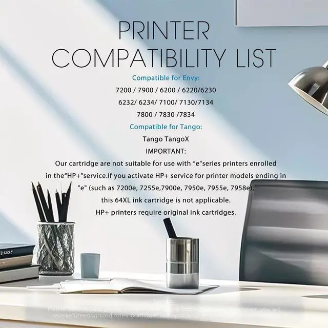 ^^ Note: If you activate the + service for the printer model end up with 'e', like Photo 7955e 7958e 7255e 7200e 7900e, for hp ink 64 is not applicable. However, if the + service has not been activated, this cartridge will still work