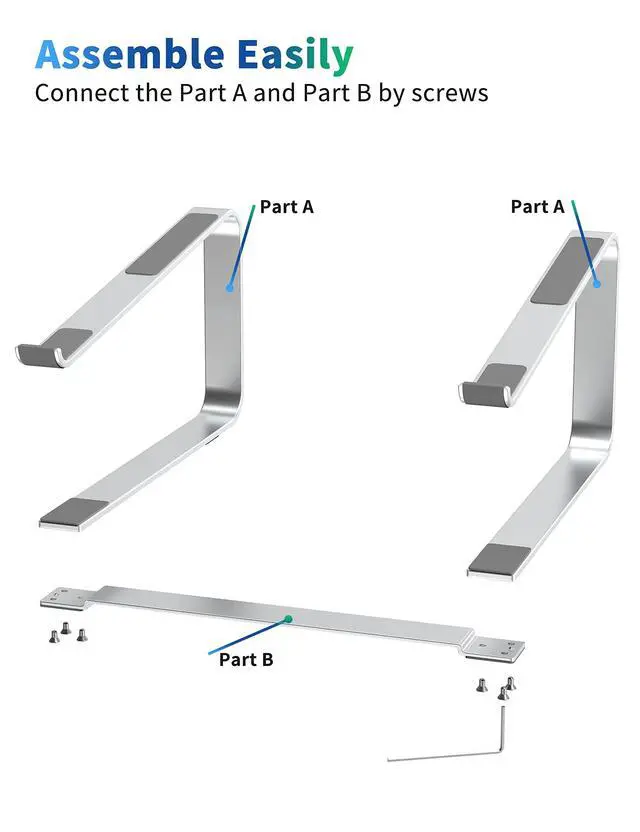• Easy to Assemble - By the little tools in the package, it is convenient to assemble th laptop stand in 2 steps.