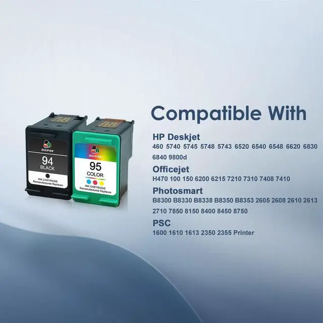 FOR HP 94 95 INK CARTRIDGES COMBO PACK COMPATIBLE PRINTERS HP Deskjet 460 5740 5745 5748 5743 6520 6540 6548 6620 6830 6840 9800d Officejet H470 100 150 6200 6215 7210 7310 7408 7410 ^^ FOR HP 94 95 INK COMPATIBLE PRINTERSPhotosmart B8300 B8330 B8338 B8350 B8353 2605 2608 2610 2613 2710 7850 8150 8400 8450 8750 PSC 1600 1610 1613 2350 2355 Printer ^^