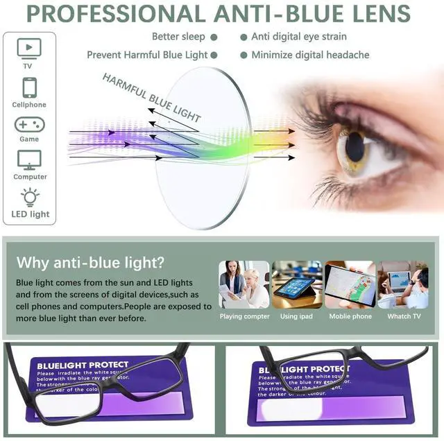 • [Professional Eye Protection Lens]: Blue light blocking magnifying lens with UV protection help you filter harmful blue light when using digital screen and reading.