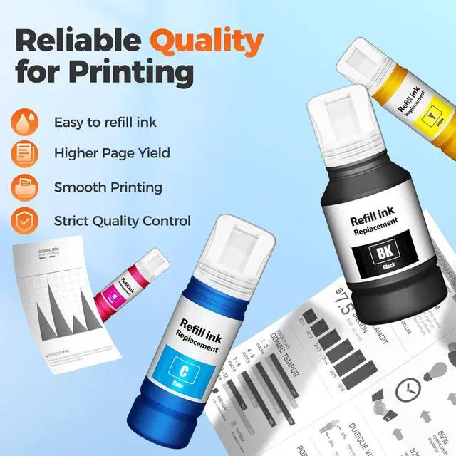 Sharp Text & Vibrant Color: These ink refill bottles has ink that allows you to print whatever you need, including documents, reports, letters, photos, graphics and much more.