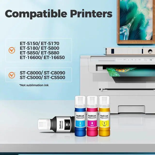 Compatible for: ET 5150, ET 5170, ET 5180, ET 5850, ET 5880, ET 5800, ET 16650, ET 16600, ST-C8000, ST-C8090, ST-C5000, ST-C5500 printers, for et-16650 ink refill, for et-5850 ink refill, for et-5150 ink refill, for et-5170 ink refill, for et-5180 ink refill, for et-5880 ink refill, for et-5800 ink refill, for et-16600 ink refill, et-5850 ink, et-5880 ink, et-5800 ink, et-16650 ink, et-16600 ink, et-5180 ink, et-5170 ink, et-5150 ink, 5150 ink, 5170 ink, 5180 ink, 5800 ink, 5850 ink, 5880 ink, 16650 ink 16600 ink.