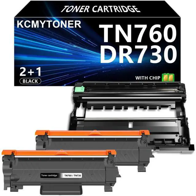 ^^ BOX Include: 2 Pack TN760/TN-760 Black toner cartridge, 1 Pack DR730 Drum unit all toner cartridge with smart Chip ^^ KCMYTONER Toner Cartridge has Certified ISO 9001 for quality assurance. Environment assured Certified ISO 14001. Performance you can rely upon. ^^ tn-760/tn-730 toner cartridge and dr730/dr-730 drum deliver the best quality printing results: sharp text, bold blacks, crisp graphics and resists fading, smudging, and bleeding. Easy to install. Perfect partner with your printer and copier. Perfect compatibility for your printer.
